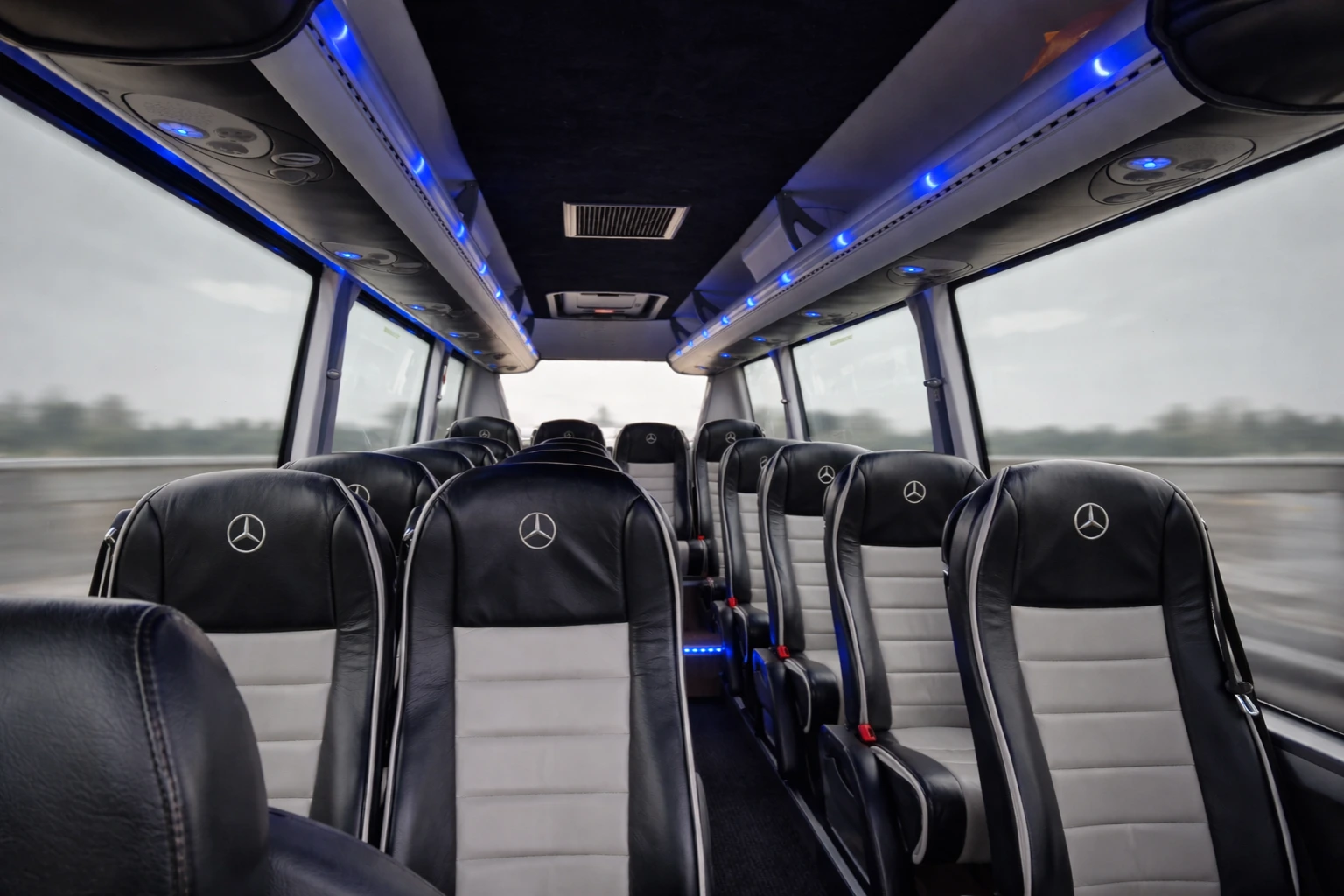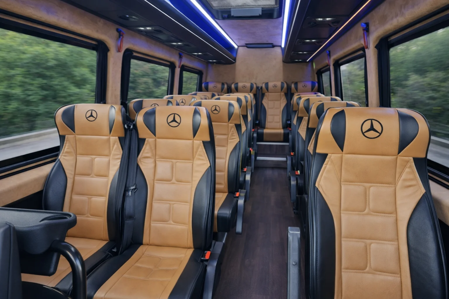 From the iconic Mercedes-Benz Sprinter, renowned for its refined luxury, to the Mercedes-Benz Tourismo, offering generous space and superior comfort, and the innovative Turas 700s, ideal for environmentally conscious travel, our collection represents the highest standards of modern transportation.