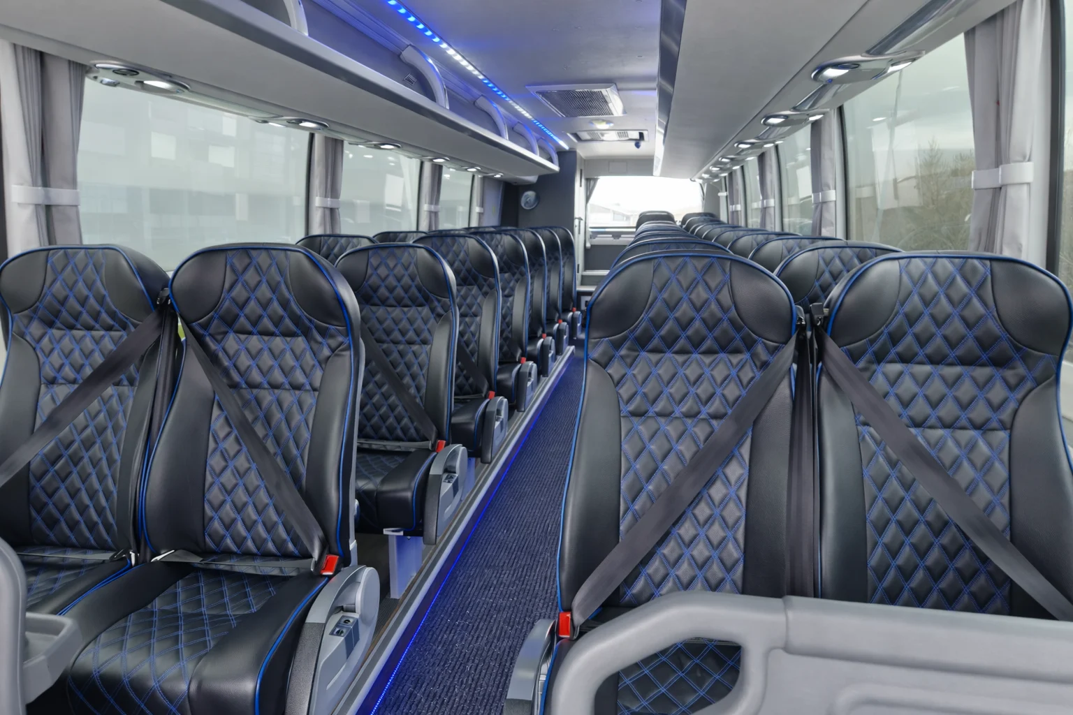 Fully Air Conditioning+ Heating +USB charging points+ Feature Lightning+ PA/stereo sound system+ Large capacity for luggage and equipment
